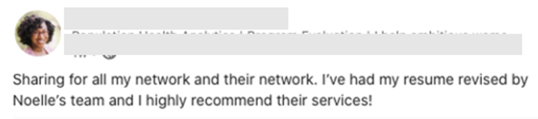Lifetime access to Noelle's private LinkedIn client group for a lifetime of career and job search support from other professionals as well as Noelle's community of coaches! You'll be amongst friends and a network of networkers ready to help encourage you and connect you throughout your career!